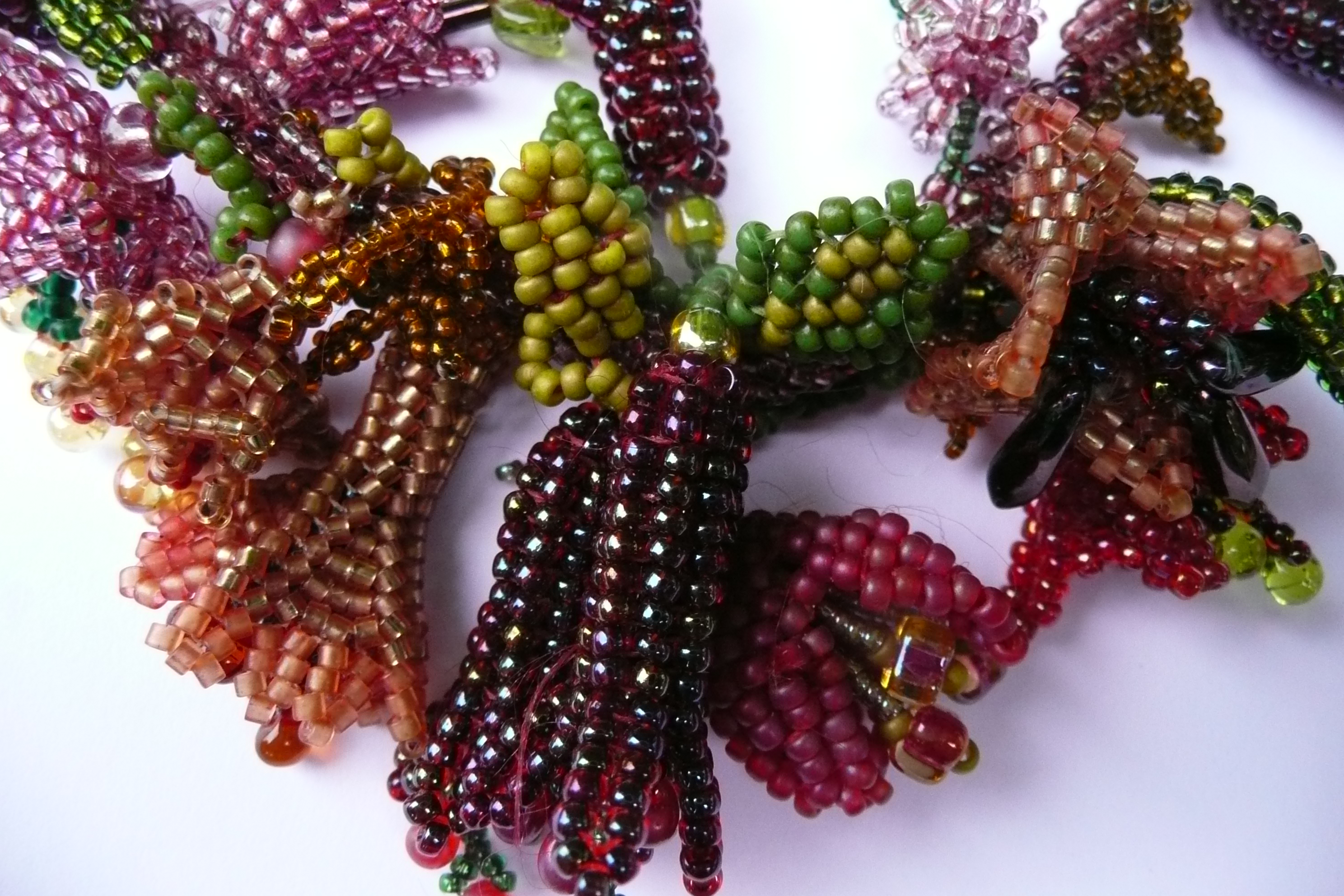 One of my unexpected pleasures is meeting past students, especially when I hear about their latest project and best of all, that they are continuing to be creative. I bumped into Alison yesterday who showed me some beadwork jewellery. It’s just made out of samples as a way of getting back into making after a period of ill health. I love the colours and as she said it was very therapeutic to be involved again so making is good for you!