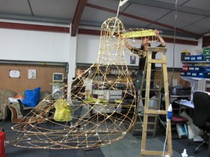 Here’s the skeleton of the giant seagull being made and here is the almost completed bird!