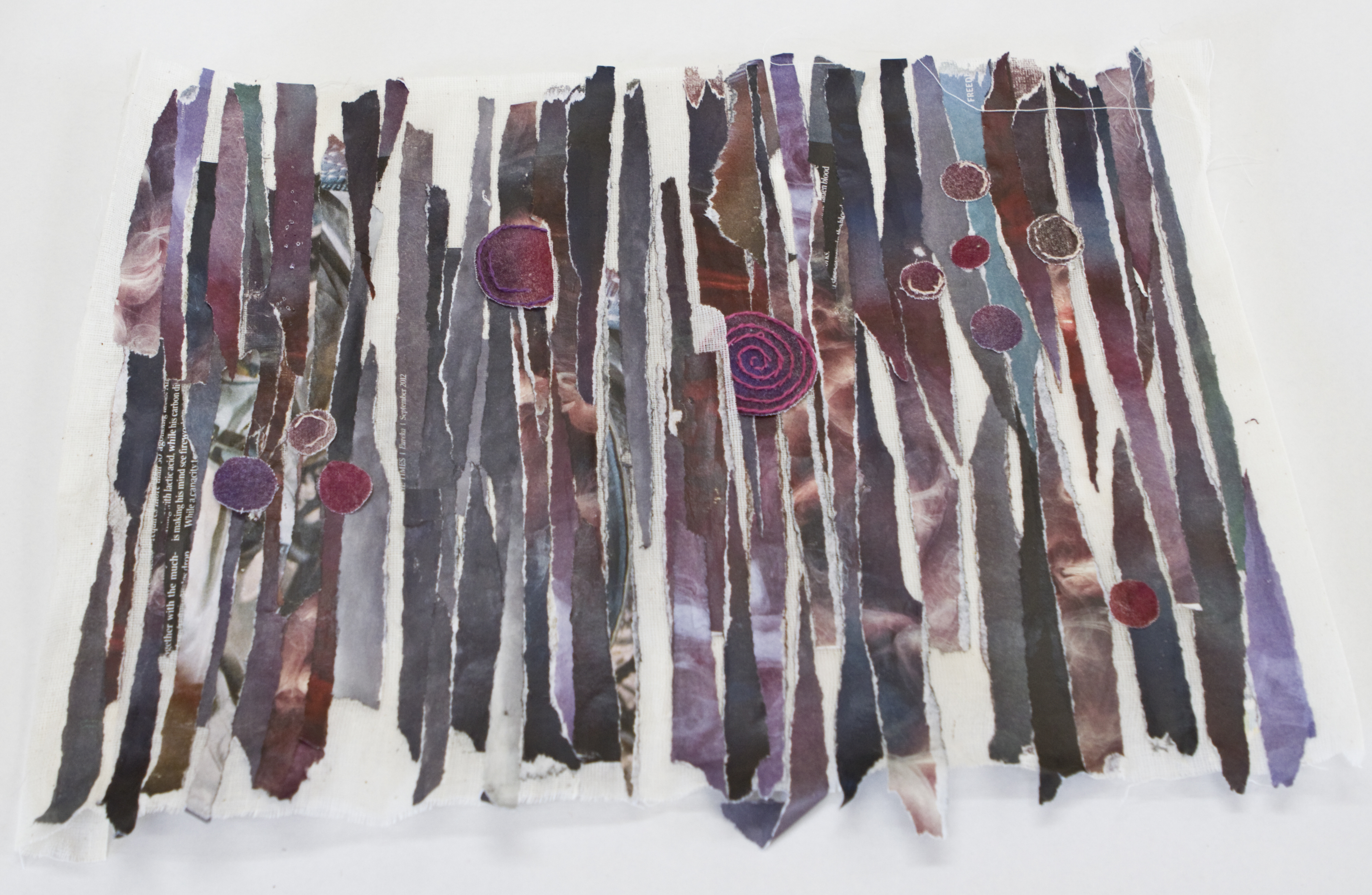 - Val’s work in progress; design work and cloth paper ready to be worked further.