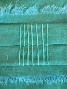 Everyone tried various ideas based on the joining stitch on the raffia cloth and decorative seams on the Adinkra cloth.