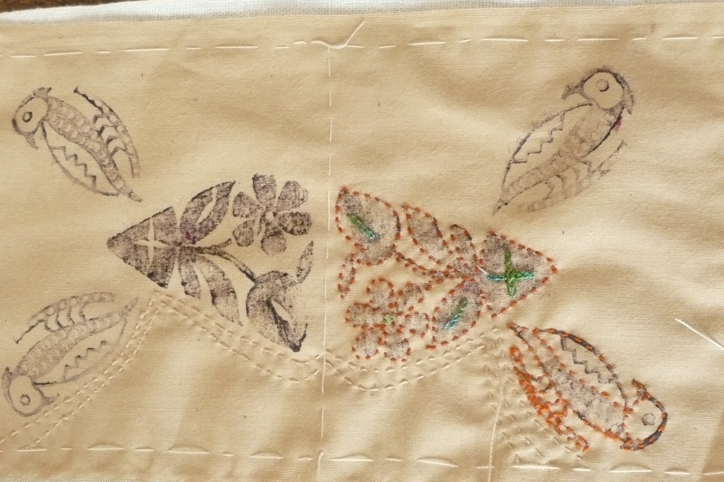 The students combined kantha quilting with printing and just enjoyed the rhythm of stitching by hand. Just getting started!