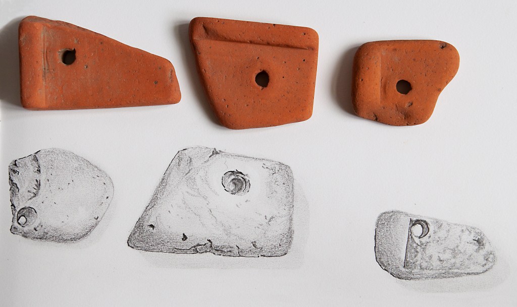 Tile works have been and continue to be an important part of local industry. I’ve enjoyed many an hour collecting fragments along the river’s edge, taken them home to draw as inspiration and make work.