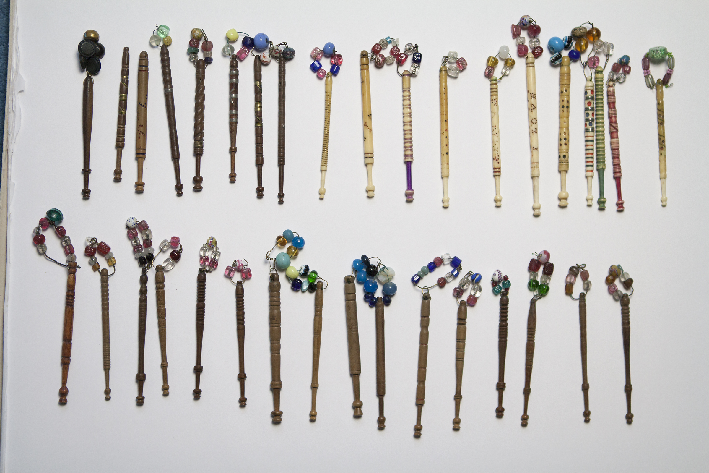 Some are bone and others are wound with wire and all are finely turned. I’d love to know more about them.