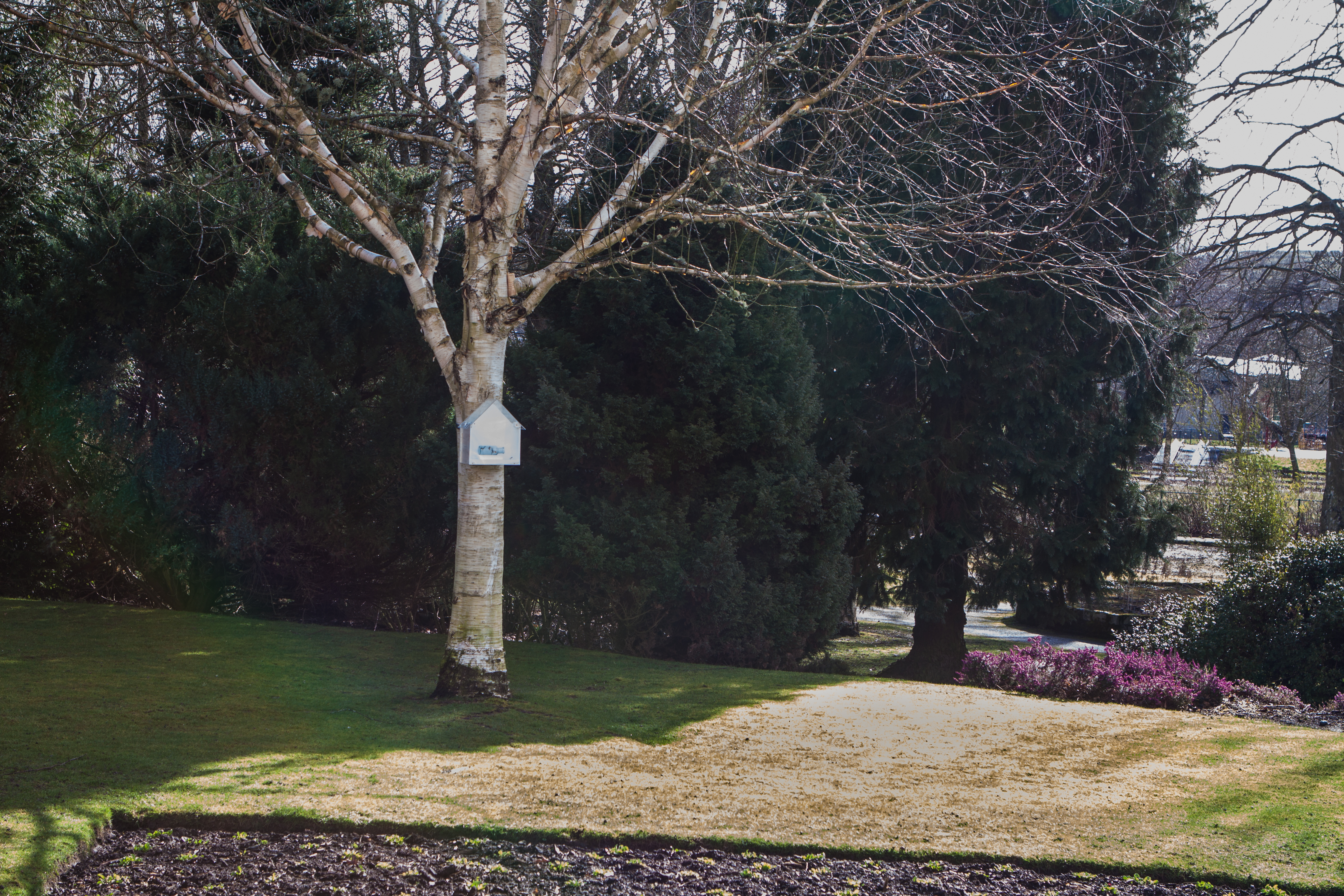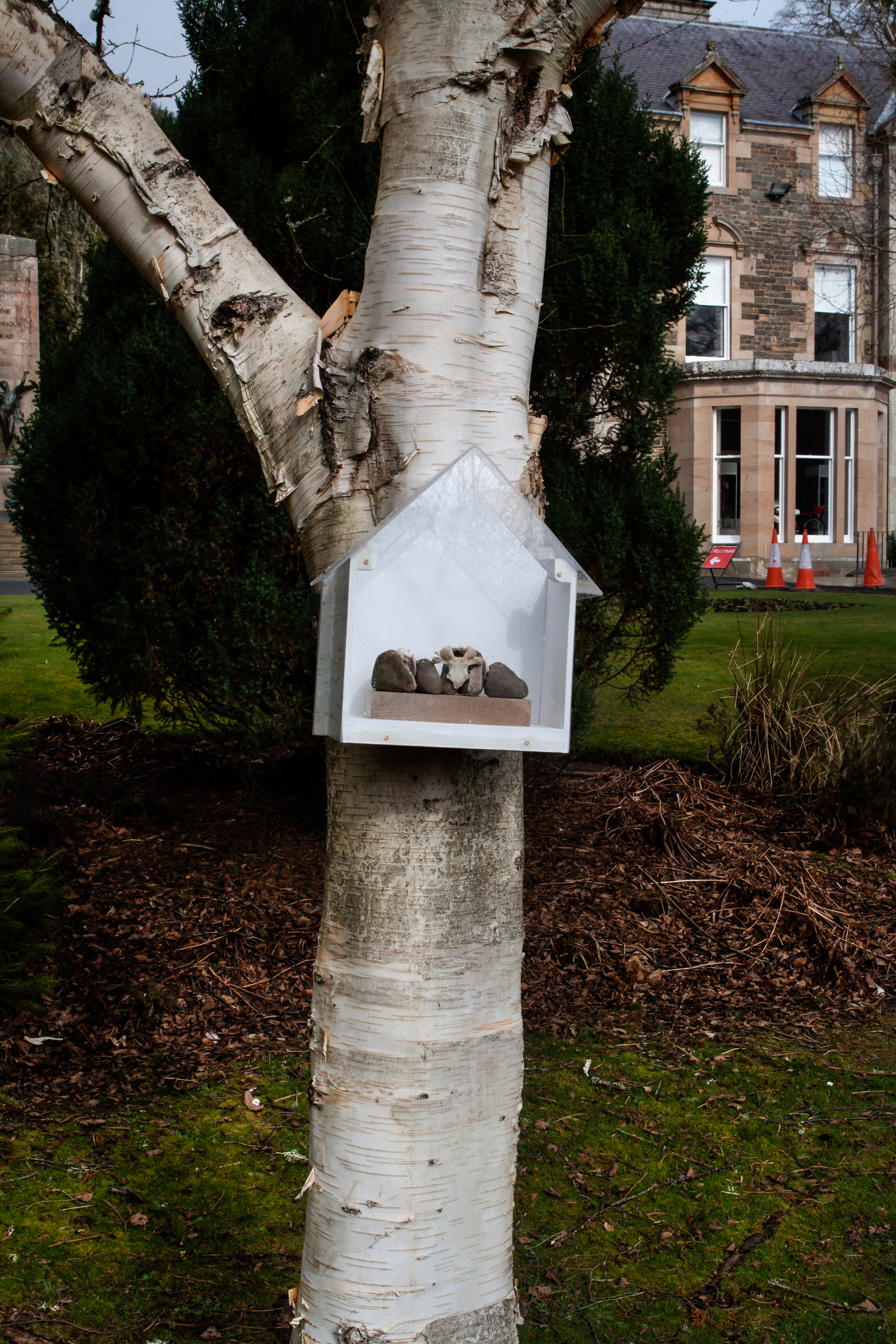 I can’t quite believe that my 7 gallery boxes are all located up in paper bark birch trees and Jan’s boxes are embedded down in the ground nearby. We just beat the rain and snow! The work in the gallery, In Place responds to the museum collection and the grounds of Wilton Lodge Park and continues our work, similar in some ways and quite different in others.